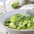 Tagliare 1 broccolo a cimette e farlo cuocere in acqua bollente. Quando è quasi cotto, ma ancora croccante, scolatelo e mettetelo a bagno in una ciotola con acqua fredda e dei cubetti di ghiaccio. Questa operazione serve a mantenere il colore verde brillante al broccolo. Far soffriggere l'aglio tritato in una padella con dell'olio caldo, unire la panna, mescolare bene, aggiungere la buccia di limone grattugiata, salate, pepate. Date una mescolata ed unite il succo di limone.