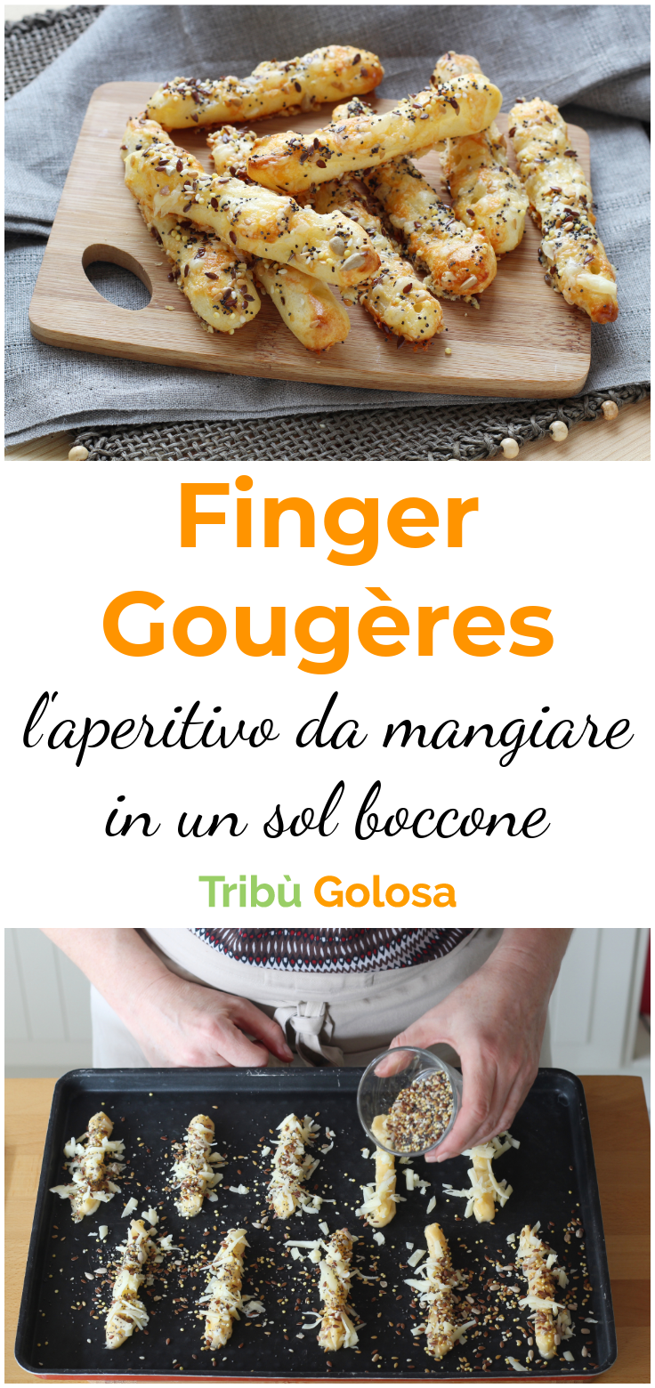 I gougères sono dei deliziosi bignè salati al cui impasto viene aggiunto del formaggio, e sono tipici della Borgogna e della Franca Contea. In questa ricetta li abbiamo rifatti a forma di...dita!
