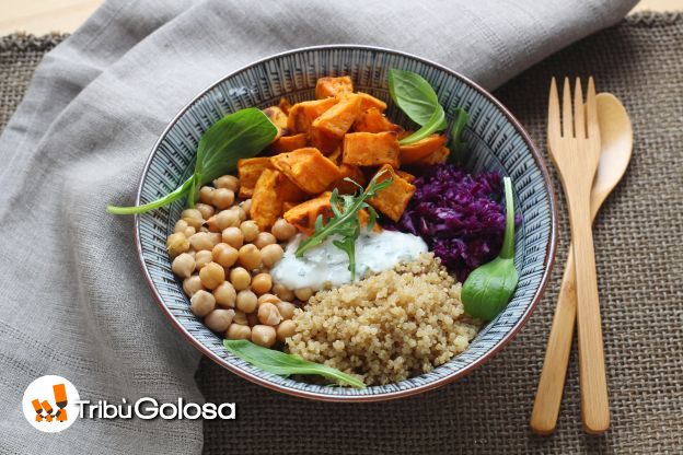Coloratissima questa insalata no? Il buddha Bowl è un pranzo a base di cereali, verdura e legumi per un apporto proteico completamente veg, da servire con delle fresche salse allo yogurt; bello, buono e sano! Cosa chiedere di meglio?