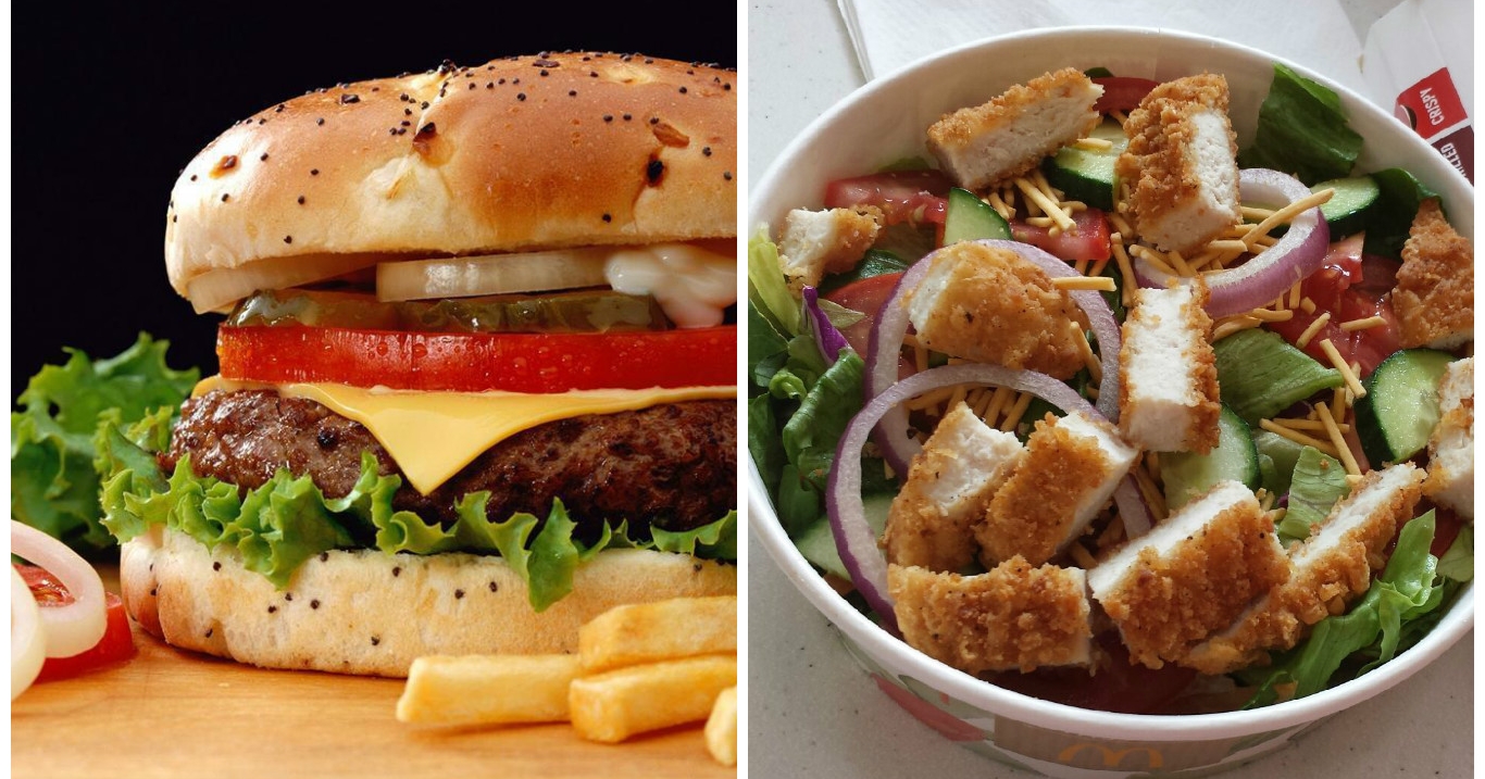 Bene, questa era l'aspettativa, ma la realtà è un'altra: le insalate del McDonald's non sono meno caloriche dei panini: una caesar salad con pollo croccante contiene 320 kcal contro le 305 kcal di un cheeseburger. Certo, l'insalata sfamerà più di un solo panino, ma l'importante è capire che non è perché stiamo mangiando un'insalata che stiamo avendo per forza a che fare con qualcosa di leggero. Secondo la rivista inglese dei consumatori "Which?" alcune insalate infatti contengono più sale degli hamburger, risultandone più grasse.