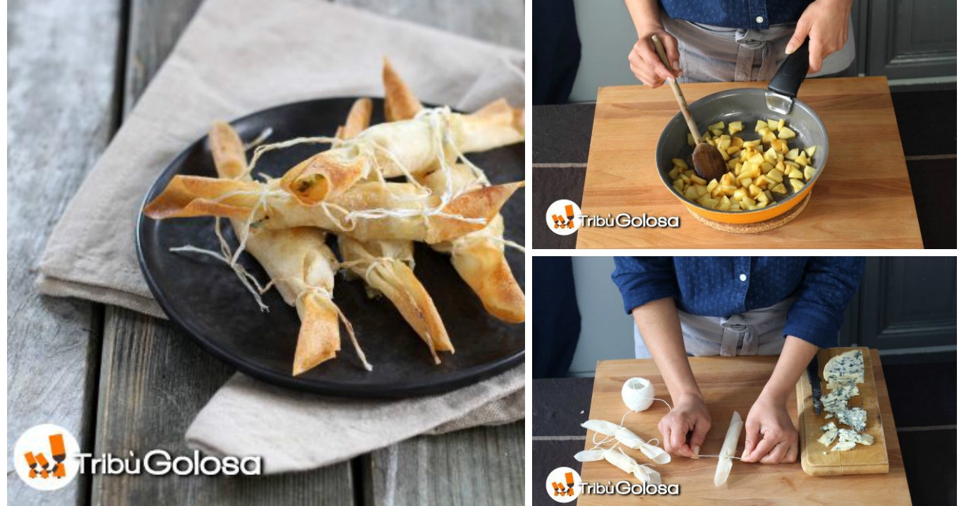 Ecco un simpatico e croccante aperitivo che combina la dolcezza delle mele con il sapore deciso del gorgonzola.
