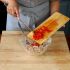 Terminate disponendo 3 pomodorini sulla superficie di entrambe le scatolette. Spolverate con le erbe aromatiche.