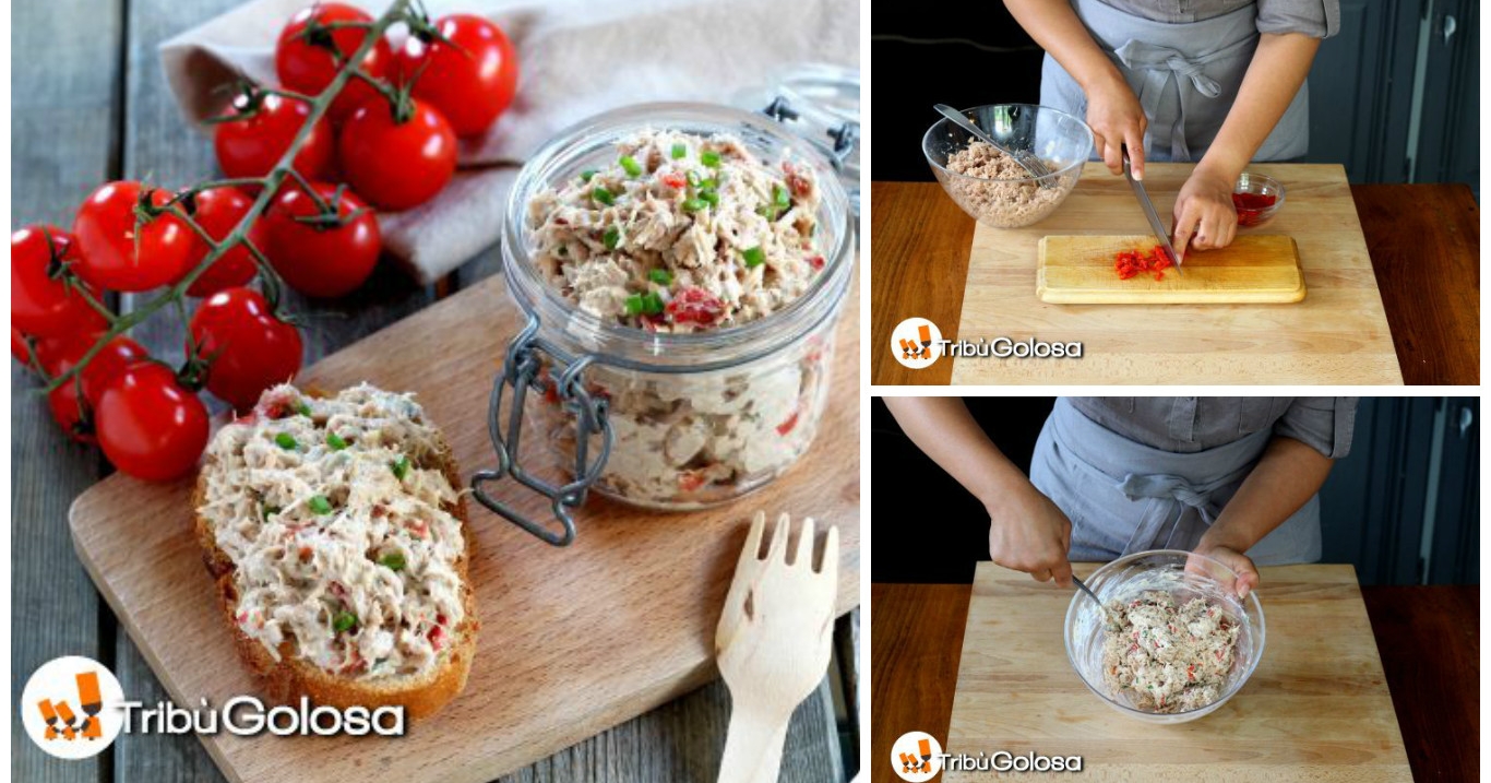Vi serve qualche idea per delle bruschette speciali? Ecco un'ottima e velocissima mousse di tonno, formaggio fresco e peperoni.