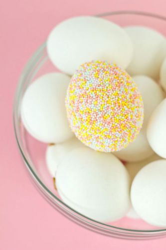 Adorabili, allegre e super originali queste uova decorate con dei confettini colorati. Perfette per abbellire la vostra tavola di Pasqua!