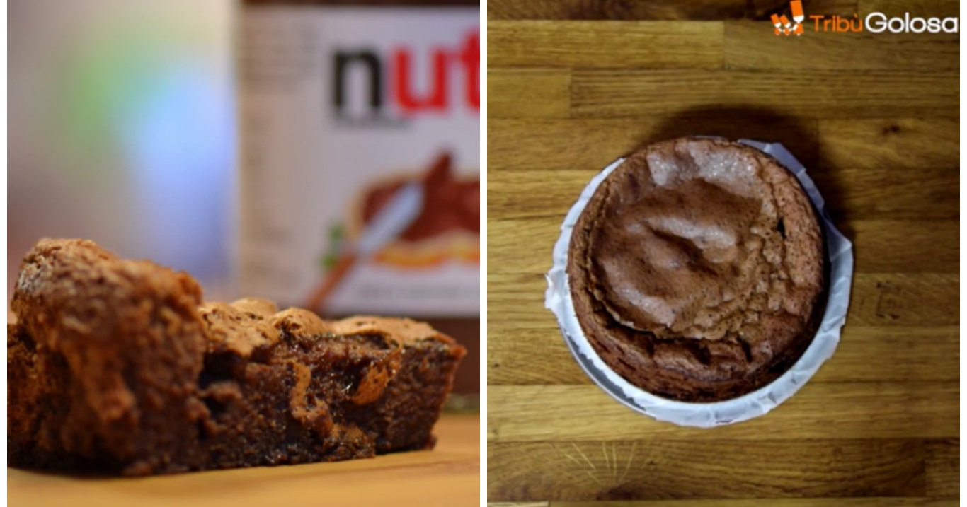 Per realizzarla montate 3 uova aiutandovi con delle fruste elettriche finché non otterrete un composto spumoso. Aggiungete 180 g di Nutella e mescolate bene il tutto. Trasferite la crema in una tortiera ricoperta di carta da forno o imburrata e infarinata e fate cuocere in forno a 180°C per 30 minuti.