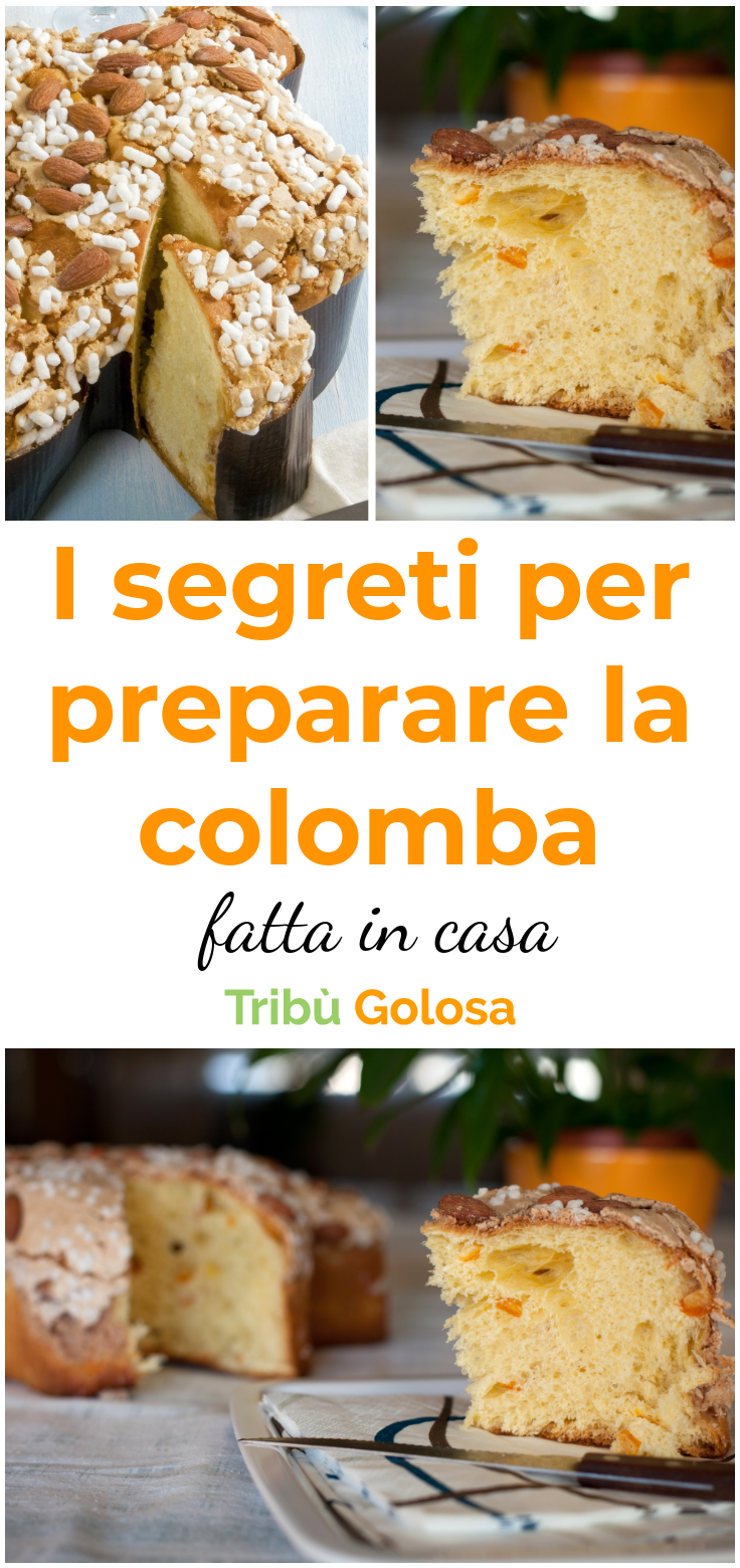 Non è davvero Pasqua senza la colomba, il tradizionale dolce pasquale a base di farina, burro, uova, zucchero, mandorle e arancia candita, da gustare liscio oppure farcito con una crema golosa. Nel periodo pasquale basta recarsi al supermercato per trovare colombe di tutti i tipi, per tutti i gusti e per tutte le tasche. Certo, la colomba che possiamo comprare al supermercato è buona... ma se per quest'anno la preparassimo con le nostre mani? Fatta in casa è ancora più buona!