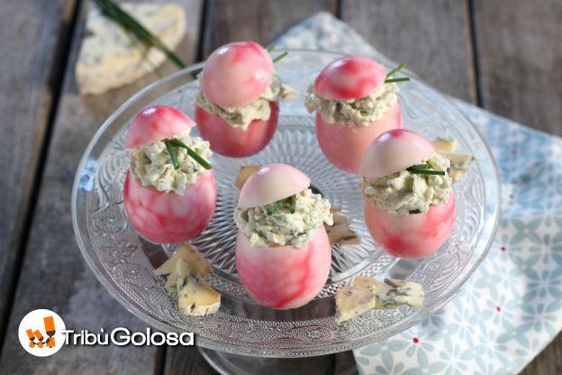 Uova marmorizzate ripiene di crema al gorgonzola