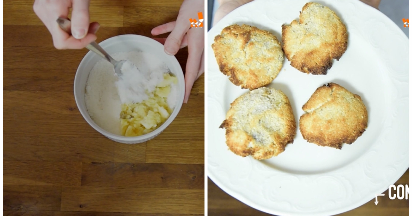 Ecco dei biscottini pronti in un lampo e con soli due ingredienti! Schiacciate una banana matura con una forchetta, mescolatela con 160 g di farina di cocco e, una volta amalgamati bene gli ingredienti, formate delle palline che metterete su una placca da forno. Schiacciatele leggermente con il palmo della mano e infornate a 180°C per 20-25 minuti. Ed ecco che i biscotti sono pronti per essere gustati!
