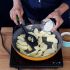 Tagliate il pane a cubetti, mettete sulla placca del forno ed infornate per 5 minuti a 180°. Schiacciate le banane in una ciotola ed unite le uova sbattute. Mescolate ed unite il latte, la cannella e la vaniglia alla crema. Unite i pezzi di pezzi di pane tostato, le gocce di cioccolato e mescolate bene.