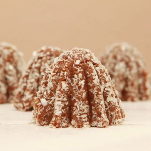 Per la copertura: fate sciogliere 120 g di cioccolato fondente a bagnomaria. Aggiungete 10 g di burro e 1 cl di panna fresca. Versate in un piatto fondo la crema ottenuta, e in un altro del cocco disidratato (50-75 g). Immergete i dolcetti prima nel cioccolato e poi nel cocco.