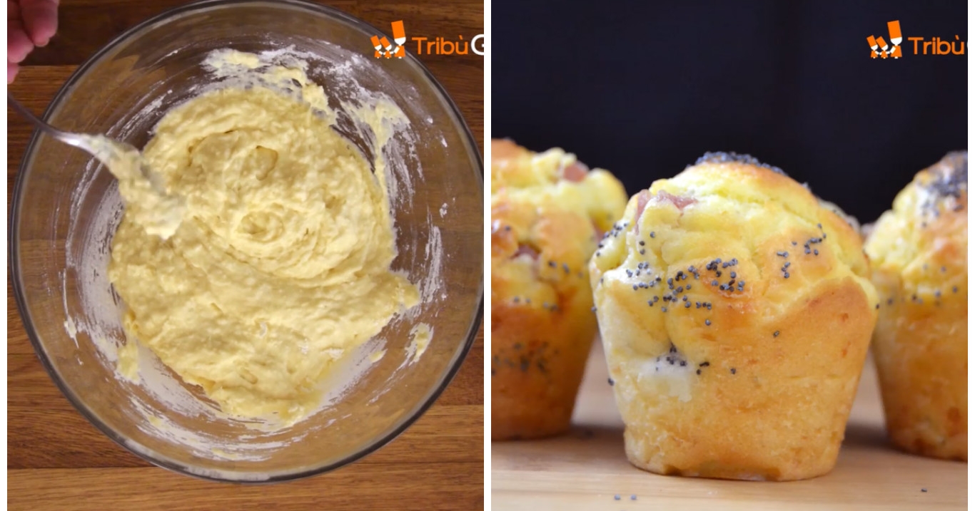 Mescolate tutti gli ingredienti cominciando dallo yogurt e dalle uova.Aggiungete per ultimi la farina e il prosciutto cotto. Trasferite l'impasto in degli stampini per muffin o cupcake. Spolverizzate di semi di papavero ed infornate a 180°C per 35-40 minuti.