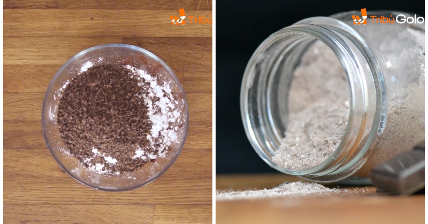 Mescolate tutti gli ingredienti in una ciotola. Per una tazza di cioccolata, mescolate 3 cucchiai della miscela ottenuta con la quantità sufficiente d'acqua per riempire la tazza. Potete consumare la bevanda sia calda che fredda.
