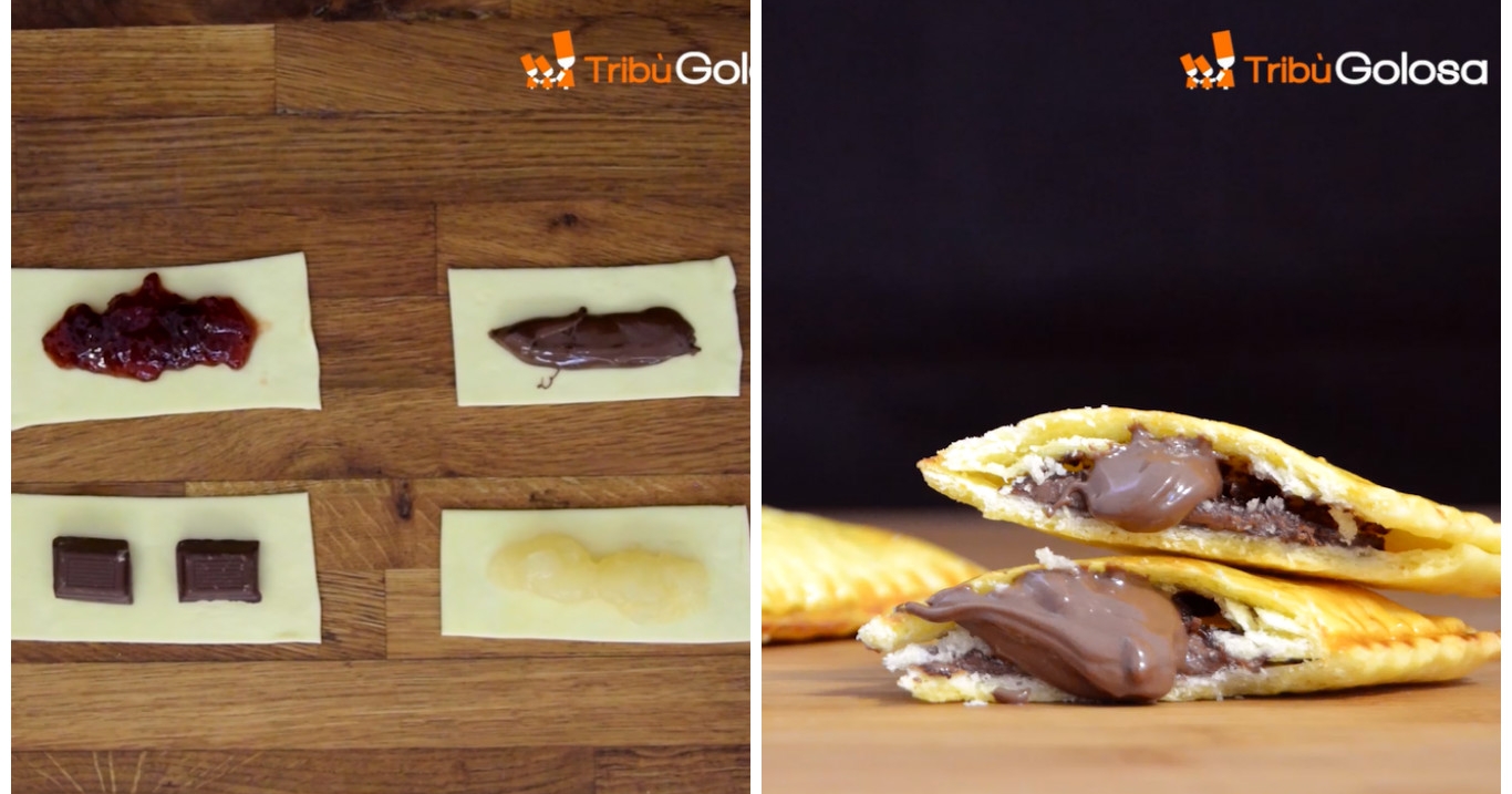Una ricetta semplicissima per improvvisare una merenda golosa: dividete un rotolo di pasta brisée in 8 rettangoli della stessa grandezza. Usatene 4 come base per i vostri fagottini e farciteli a piacere con Nutella, cioccolato, marmellata e composta di frutta. Ricopriteli con il resto della brisée, chiudete bene i bordi con i rebbi di una forchetta e trasferiteli su una teglia ricoperta di carta da forno. Spennellateli con un tuorlo e infornateli a 180°C per 20 minuti.