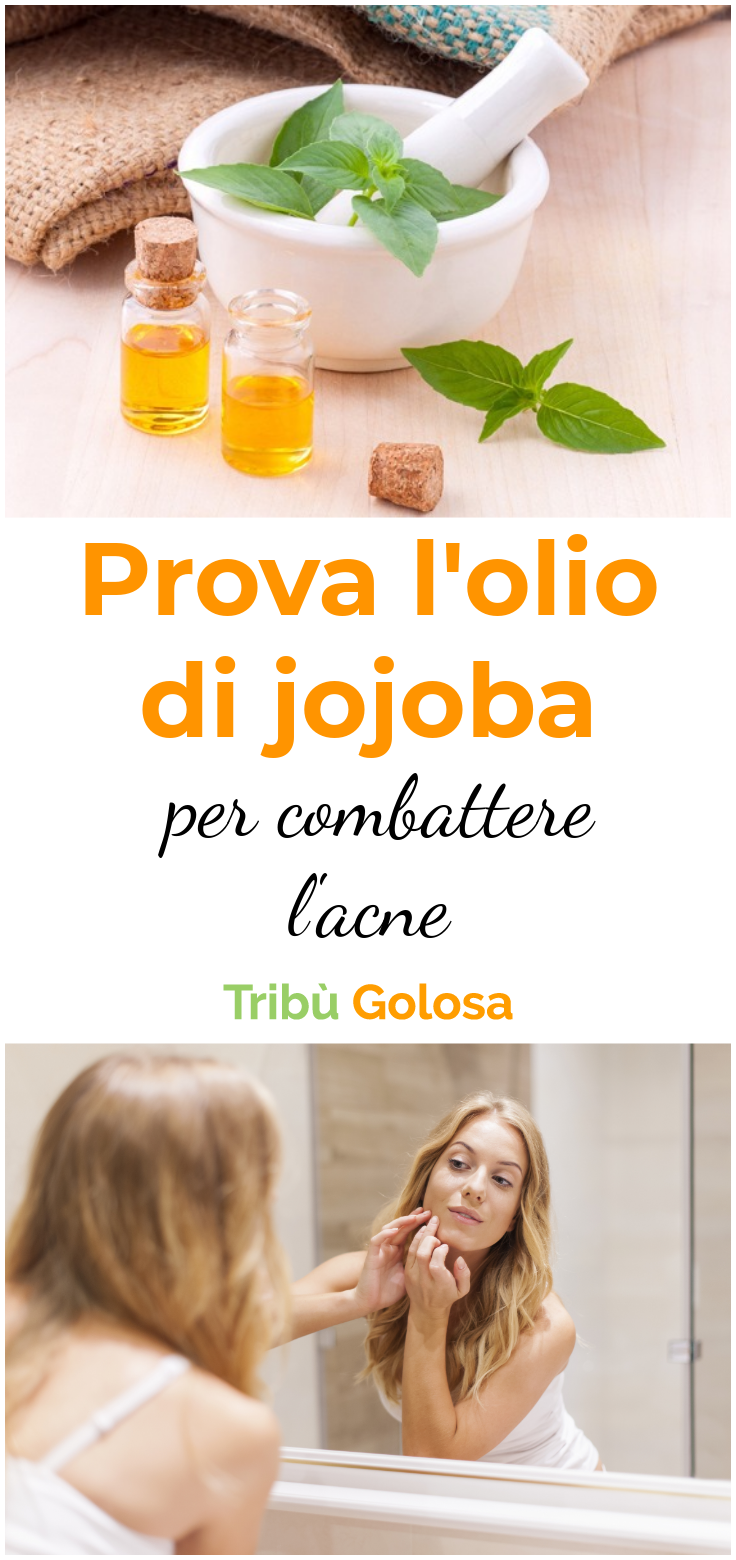 L'olio di jojoba fa parte dei più raccomandati a questo proposito, in quanto ha una composizione molto vicina a quella del sebo, il grasso prodotto dalla pelle umana. Generalmente pensiamo di dovercene sbarazzare con dei lavaggi molto vigorosi, a volte aggressivi; invece, bisogna fare l'esatto contrario. La funzione del sebo è quella di proteggere l'epidermide dalle aggressioni esterne. La sua sovrapproduzione è il risultato di uno squilibrio che il corpo prova a compensare, producendone ancora di più! L'olio di jojoba va ad aiutare la pelle a rigenerare il film idrolipidico. In questo modo, se applicate regolarmente questo olio, aiuterete la pelle a sconfiggere l'acne.