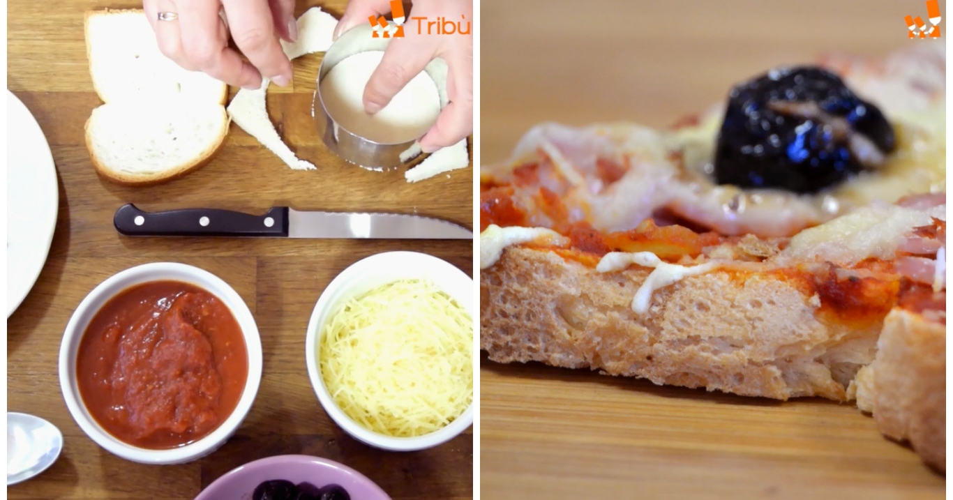 Ritagliate delle fette di pancarré, farcitele con sugo di pomodoro, del formaggio e un po' di prosciutto cotto. Infornate queste tartine a 180°C per 10 minuti e servitele calde.