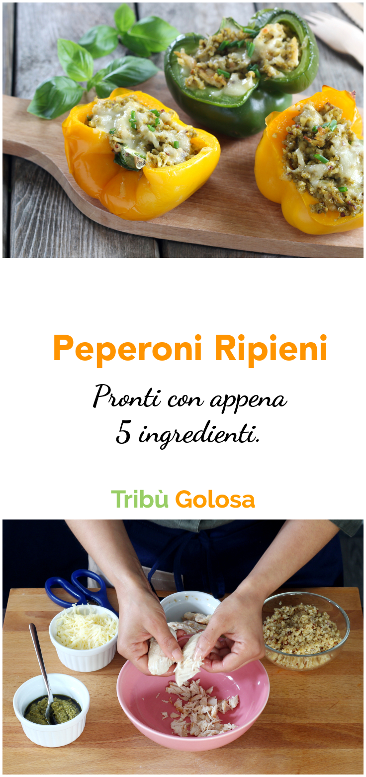 I peperoni ripieni di carne vi hanno stancato? Ecco una versione originale in cui i peperoni sono ripieni di pollo e quinoa: un piatto gustoso, originale e semplice, comodo anche da portare al lavoro per il pranzo in ufficio.