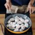 Mescolate il tutto con le mani per amalgamare bene ed ottenere un impasto liscio. Fate delle polpette della grandezza di una noce.