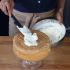 Foderare una teglia in vetro pirex con della carta forno. Far scaldare il latte e spegnerlo prima dell'ebollizione. Versarlo in una ciotola e passare velocemente i biscotti nel latte ad uno ad uno; distribuirli nella teglia, uno accanto all'altro.