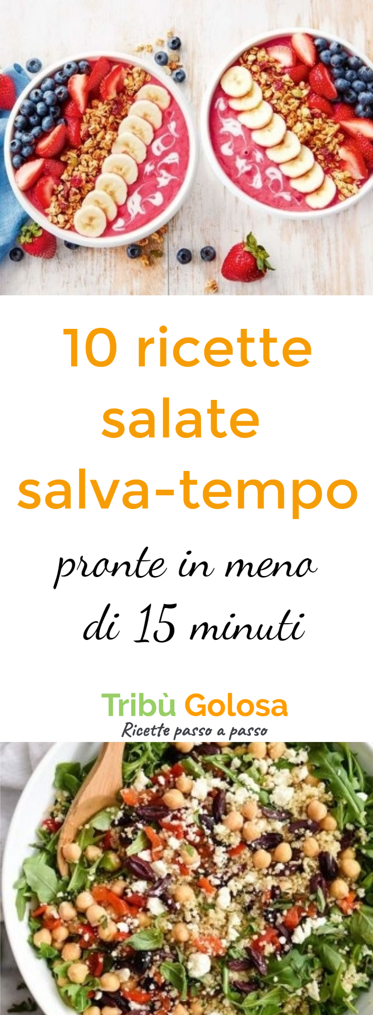 Per tutte quelle volte in cui si hanno i minuti contati, per quando gli amici vengono a cena all'improvviso o giusto per quando si desidera trascorrere in cucina il minor tempo possibile, ecco 10 ricette salate originali e gustose da realizzare in meno di 15 minuti, con le quali sorprendere i vostri invitati!