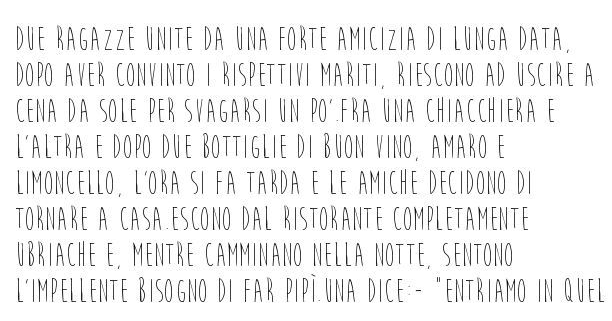 Escono dal ristorante completamente ubriache e, mentre camminano nella notte, sentono l’impellente bisogno di far pipì.