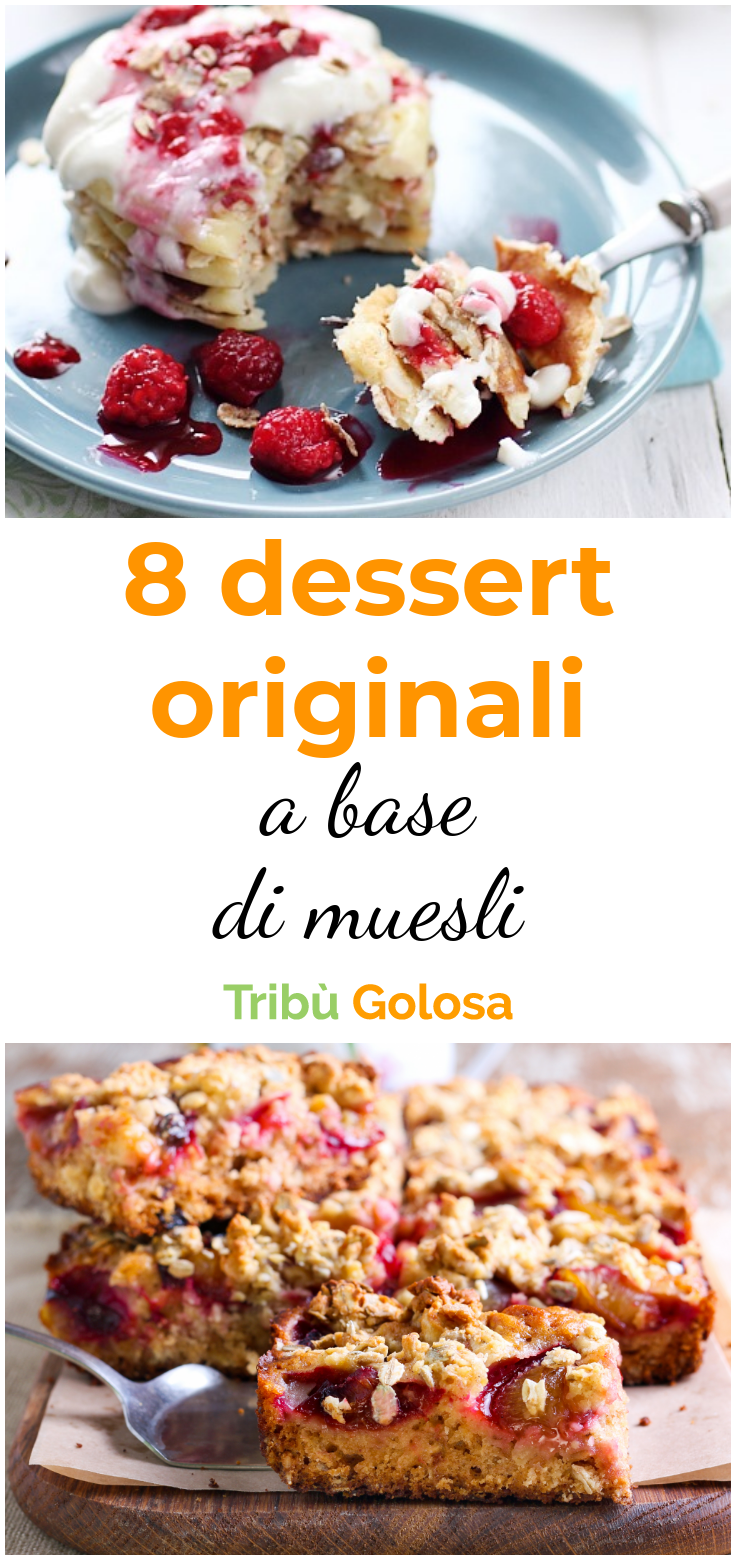 Avevate mai pensato di mettere i muesli altrove che nella tazza con il latte alla mattina? I muesli sono un ingrediente gustosissimo per certi dessert, perché dà quel tocco di croccantezza in più. Ecco le 8 ricette che abbiamo scovato per voi.