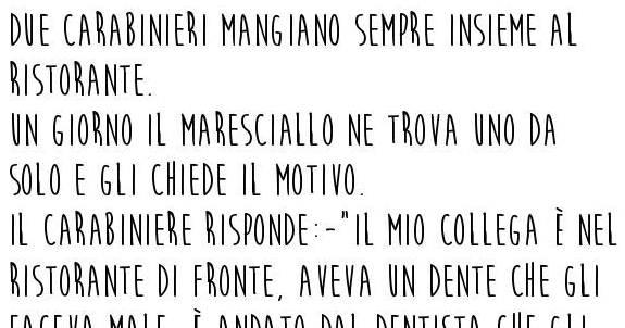 Carabinieri al ristorante Redattore Tribù Golosa, 10/11/2014 Tribù Golosa 471 condivisioni Condividi su Facebook Twitta Pin it Share on WhatsApp Condividi su G+ Scopri la barzelletta precedente! Scopri gli altri articoli della Tribù! Ex-fidanzati Nel frigorifero Cappuccetto rosso Commenta questo articolo