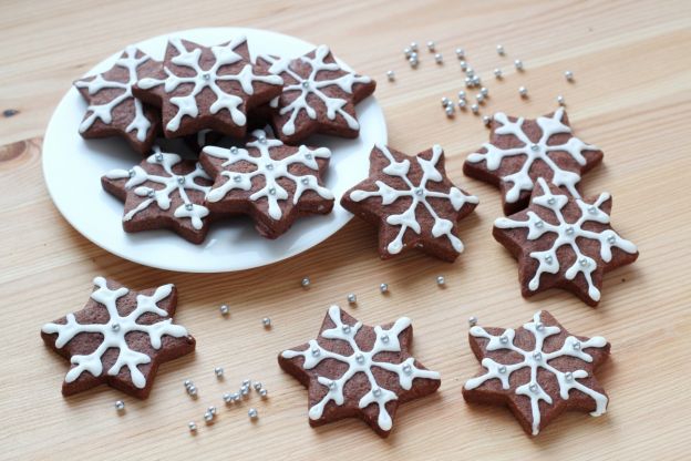 Mixate il burro con dello zucchero. Versare in una grande ciotola. Aggiungere l'uovo e continuare a mescolare. Cospargere di cacao. Aggiungere la cannella e poi la farina. Mescolare prima con un cucchiaio di legno, poi a mano, per dare una fomra arrotondata al preparato. Stendere la pasta tra due strati di carta da forno di 0, 5 cm di spessore. Lasciar riposare al fresco per 30 minuti poi tagliare delle stelle con l'aiuto di stampini. Metterli su un piano di cottura antiadesivo e infornare 12-14 minuti? Lasciare raffreddare su una griglia. Versez le mélange pour glaçage royal dans un bol et ajoutez un peu d'eau. Mescolare poi aggiungere acqua per ammorbidire il preparato. Mettete la glassa in un sac- a poche per disegnare i rami. Aggiungete le biglie argentate al centro. Lasciare riposare, poi servire.