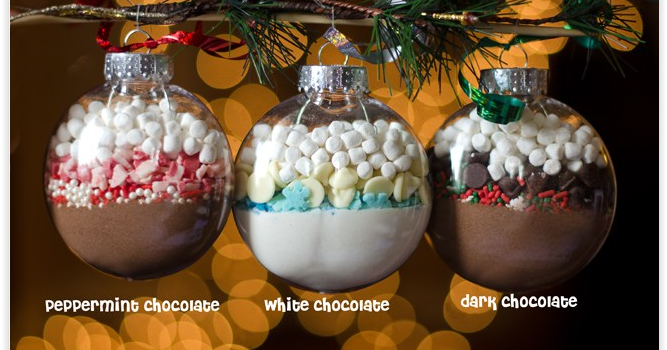 Natale si avvicina a grandi passi, e come spesso vi succede, non sapete cosa regalare per fare un presente che sia utile e bello, ma allo stesso tempo non troppo impegnativo; con queste palline di Natale riempite di preparato per cioccolata calda, colpirete nel segno!