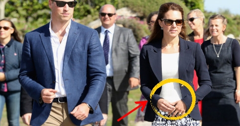 Il giornale Grand Hotel ha puntato l'attenzione sul fatto che Kate Middleton è stata "sorpresa" più volte a proteggersi la pancia con le mani.