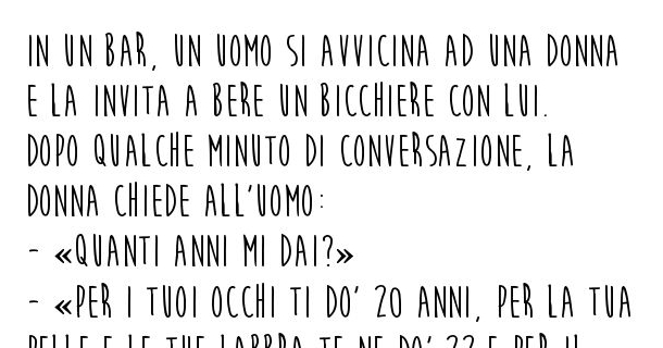 Tecniche di seduzione Redattore Tribù Golosa, 02/12/2014 Tribù Golosa 254 condivisioni Condividi su Facebook Twitta Pin it Share on WhatsApp Condividi su G+ Scopri la barzelletta precedente! Scopri gli altri articoli della Tribù! Ex-fidanzati Nel frigorifero Cappuccetto rosso Commenta questo articolo