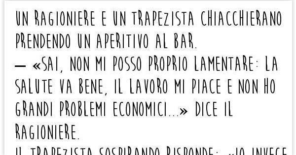 Il trapezista DiValentina Calanchi, 02/12/2014 Tribù Golosa 55 condivisioni Condividi su Facebook Twitta Pin it Share on WhatsApp Condividi su G+ Scopri la barzelletta precedente! Scopri gli altri articoli della Tribù! Ex-fidanzati Nel frigorifero Cappuccetto rosso Commenta questo articolo