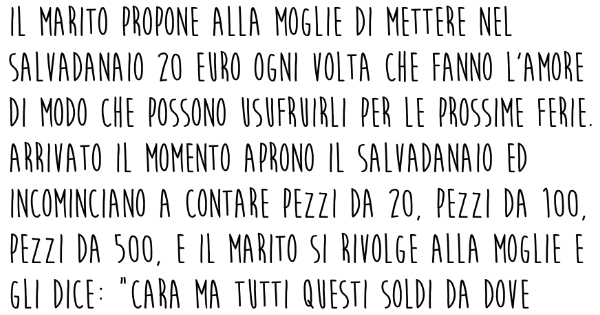 20€ ogni volta che FANNO L'AMORE per poter andare in VACANZA DiRiccardo Ferretti, 08/02/2017 Tribù Golosa condivisioni Condividi su Facebook Twitta Pin it Share on WhatsApp Condividi su G+ Scopri gli altri articoli della Tribù! la minestra di verdure Pierino e l'uovo di Pasqua I giovani sposi Commenta questo articolo