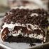 Le lasagne al cioccolato: un dolce dagli strati curiosi, che è una sorpresa continua...uan base di biscotti Oreo, quindi della mousse al formaggio, del budino al cioccolato e della panna montata, e per terminare gocce di cioccolato.