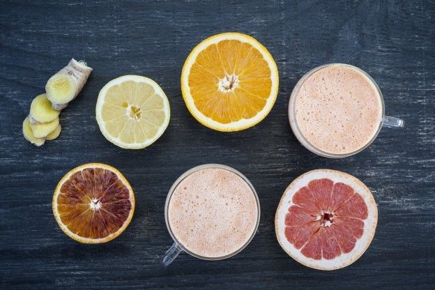 Frullare insieme due limoni sbucciati, un pompelmo sbucciato e un pizzico di zenzero.