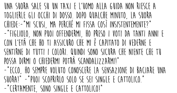 Il giorno in cui baciai una SUORA DiRiccardo Ferretti, 15/02/2017 Tribù Golosa condivisioni Condividi su Facebook Twitta Pin it Share on WhatsApp Condividi su G+ Scopri gli altri articoli della Tribù! la minestra di verdure Pierino e l'uovo di Pasqua Cara, mi hai mai tradito? Commenta questo articolo