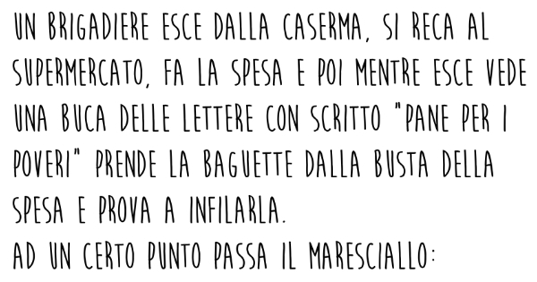 Un carabiniere e il 'Pan dei Poveri' DiRiccardo Ferretti, 20/02/2017 Tribù Golosa condivisioni Condividi su Facebook Twitta Pin it Share on WhatsApp Condividi su G+ Scopri gli altri articoli della Tribù! la minestra di verdure Pierino e l'uovo di Pasqua Cara, mi hai mai tradito? Commenta questo articolo