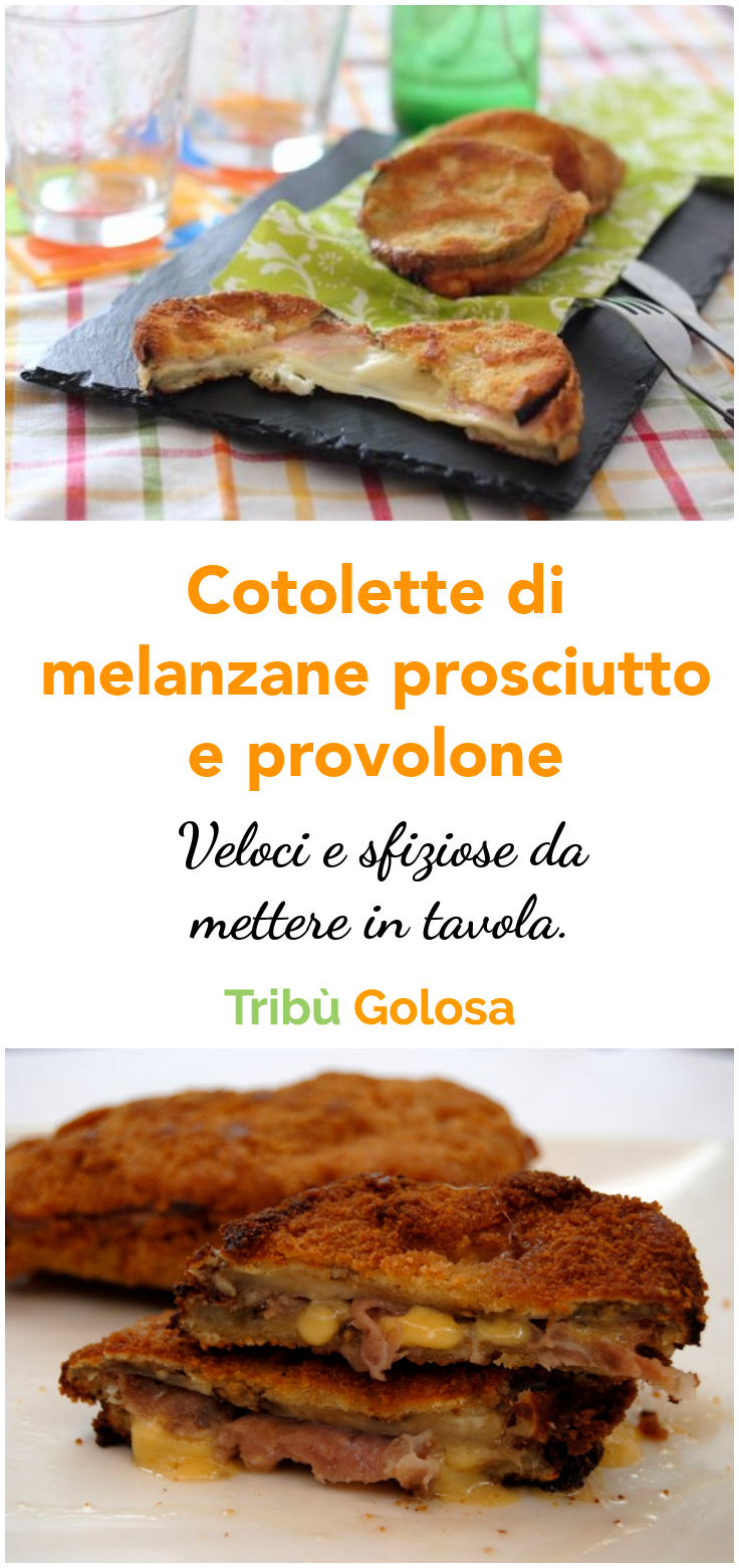 Queste cotolette di melanzane sono arricchite dal ripieno di prosciutto e provolone che le rende golose, un perfetto secondo piatto se unite a un'insalata.