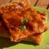 Incidere la pasta a metà nel senso della larghezza, creando due mezzelune, quindi ricavare circa 12 rettangoli.