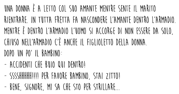 Lo strano incontro del Figlio e dell'Amante...nell'armadio DiRiccardo Ferretti, 07/04/2017 Tribù Golosa condivisioni Condividi su Facebook Twitta Pin it Share on WhatsApp Condividi su G+ Scopri gli altri articoli della Tribù! la minestra di verdure Pierino e l'uovo di Pasqua Cara, mi hai mai tradito? Commenta questo articolo