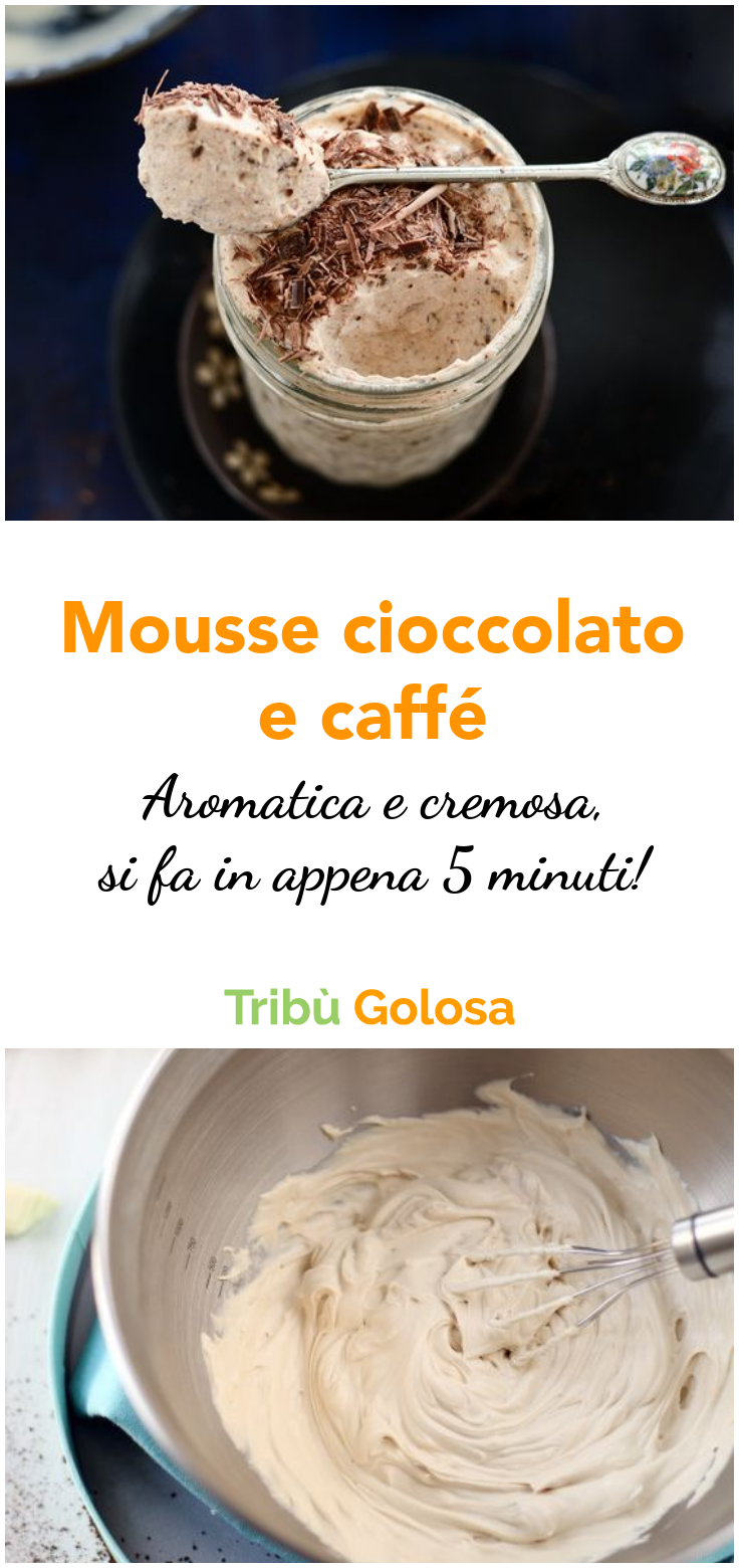 Perché non sostituire il caffè a fine pasto con questa deliziosa mousse aromatizzata al caffè ed al cioccolato? Inoltre, si prepara in 5 minuti.
