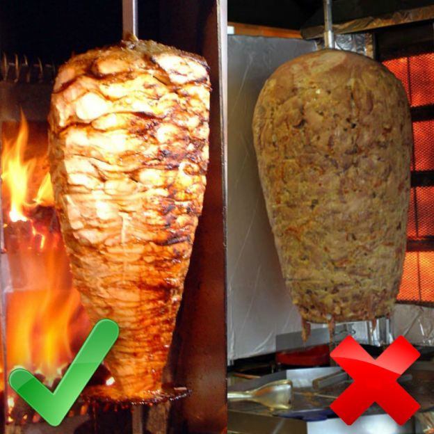 È abbastanza semplice: nel rotolo di kebab di qualità sono visibili gli strati di carne sovrapposta mentre in un kebab di scarsa qualità il rotolo sarebbe uniforme