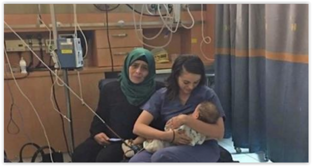 Venerdì 2 giugno è accaduto qualcosa di speciale all'ospedale Hadassah di Gerusalemme. Una giovane infermiera israeliana ha allattato un bambino palestinese di 9 mesi. Questo gesto ha salvato la vita del bambino ed è stato immortalato, la foto sta facendo il giro del mondo.