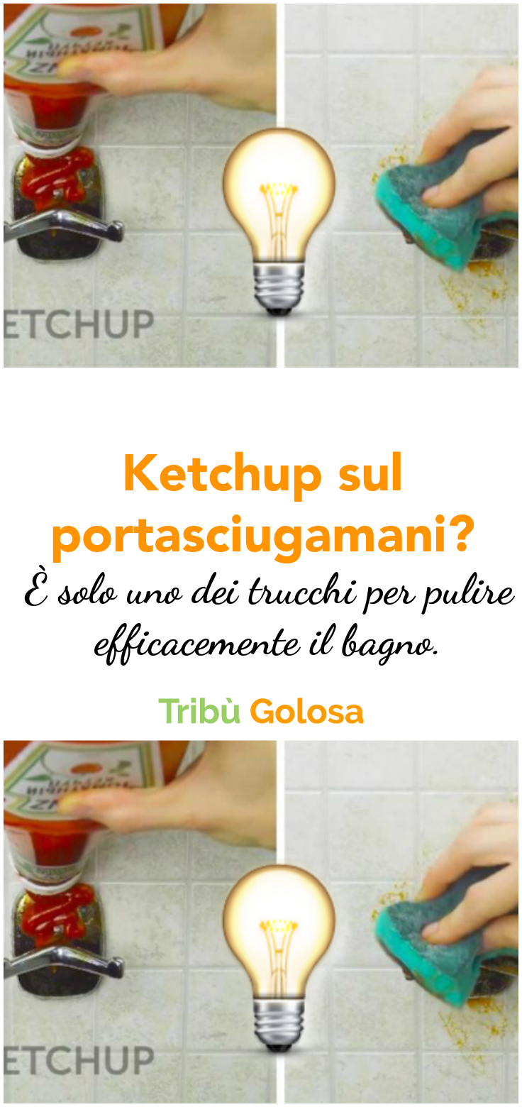 METTE DEL KETCHUP SUL PORTA ASCIUGAMANO E PASSA UNA SPUGNA: SOLO UNA DELLE FURBIZIE PER PULIRE EFFICACEMENTE IL BAGNO