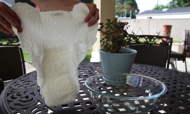 Alcuni dati: ogni pannolone contiene fino a 12 bicchieri di microgranuli d'idrogel ed ognuno di loro è in grado di assorbire 500 volte il suo peso in acqua!