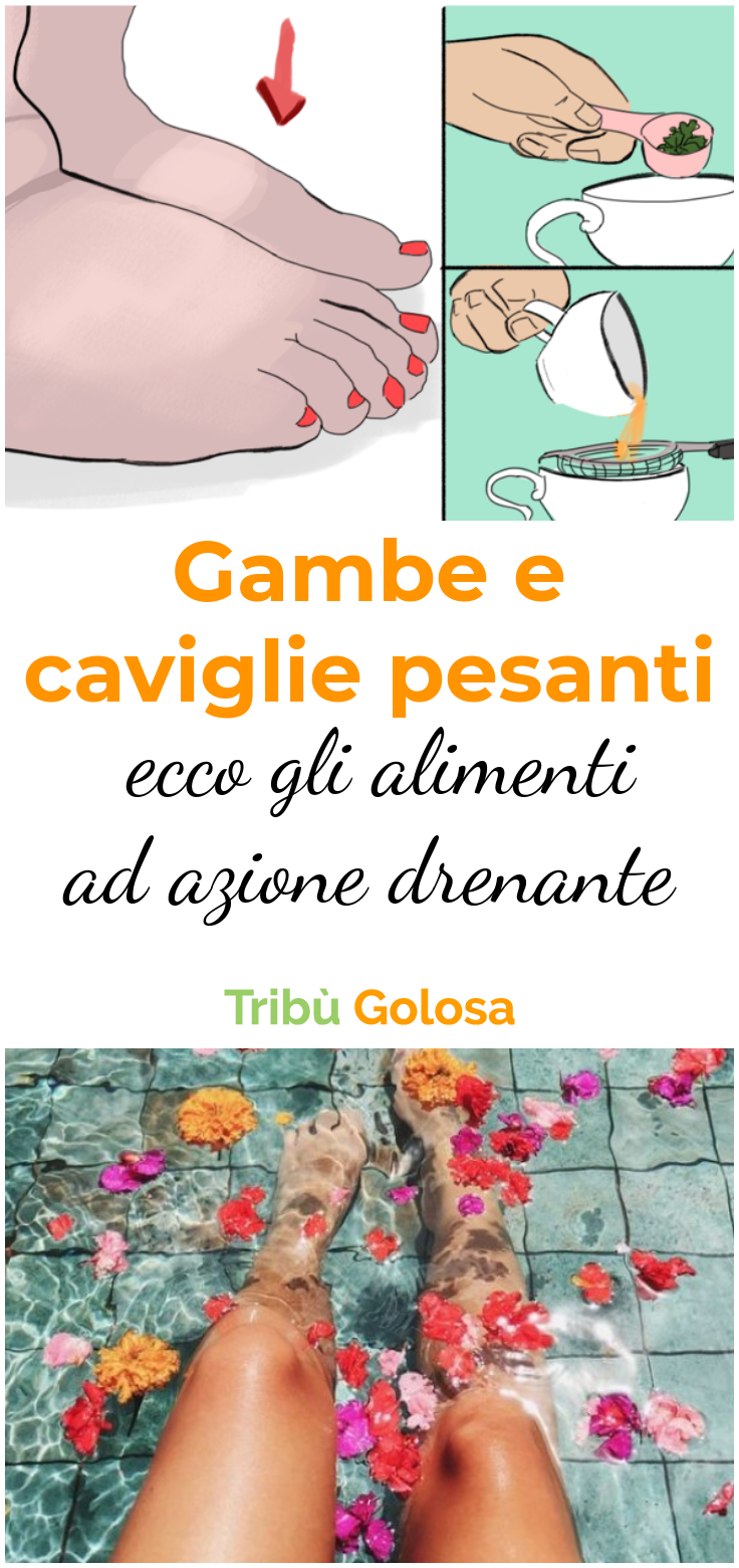 Se soffri di pesantezza alle gambe e alle caviglie, puoi cominciare con il migliorare la tua alimentazione . Gli alimenti rticchi di potassio, per esempio, migliorano e potenziano l'azione drenante alle gambe e piedi.