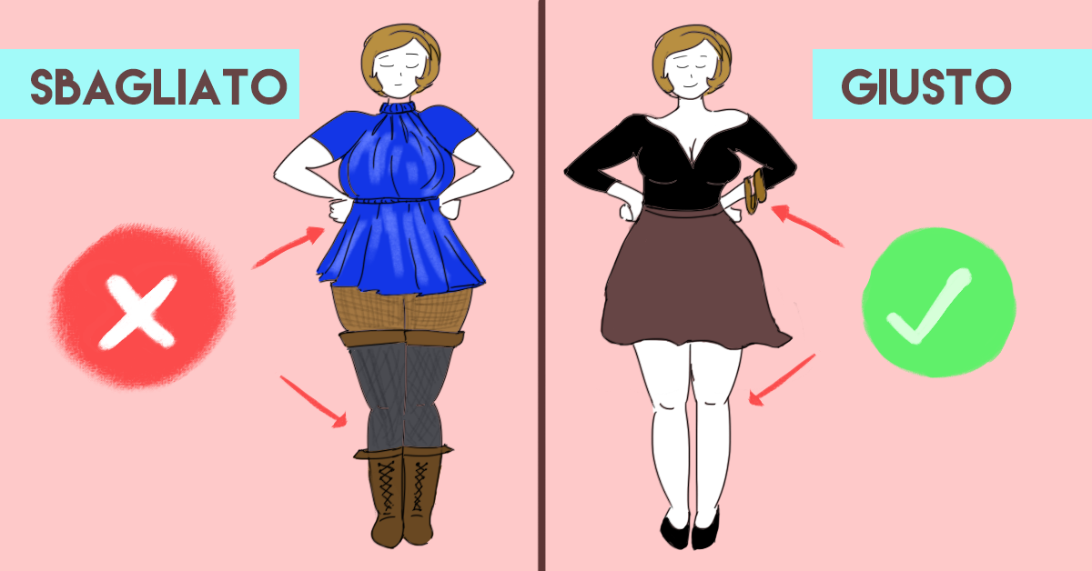 Comprate i vestiti della giusta taglia, ricordandovi che non è mai bene prendere taglie e modelli troppo aderenti, ma neanche vestiti grandi per nascondere le forme. Sono perfette le gonne appena sopra il ginocchio che scendono lisce, rispetto a degli shorts che evidenziano le cosce ed ogni minimo difetto.