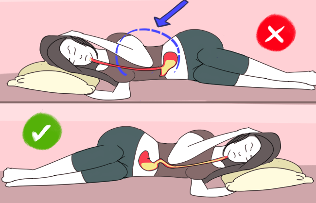 Dal modo in cui gli intestini attraversano lo stomaco, i rifiuti alimentari vengono eliminati più rapidamente se dormite sul lato sinistro. Dormendo sul lato sinistro il cibo si muove più velocemente dal piccolo intestino al colon discendente, favoriendo digestione e buon funzionamento dell'attività intestinale.