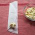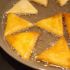Incidere la pasta a metà nel senso della larghezza, creando due mezzelune, quindi ricavare circa 12 rettangoli.