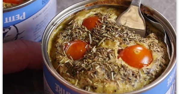 Rompete le uova in una ciotola, unite la Maizena, la panna, il pesto, il sale ed il tonno. Lavate bene e tenete da parte le due scatolette di tonno vuote. Mescolate bene il tutto e riempite le scatolette con il composto ottenuto.
