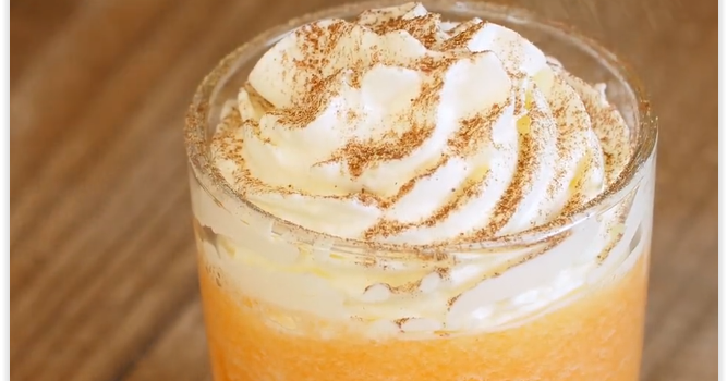 Questa bevanda allo zenzero e melone è l'ideale se volete bere qualcosa di fresco, poco calorico ma incredibilmente delizioso, con un tocco di golosità dato dalla panna montata. L'aroma dello zenzero rende la bevanda decisa e gustosa. Da accompagnare a un dolce, come una carrot cake, per avere una merenda perfetta.